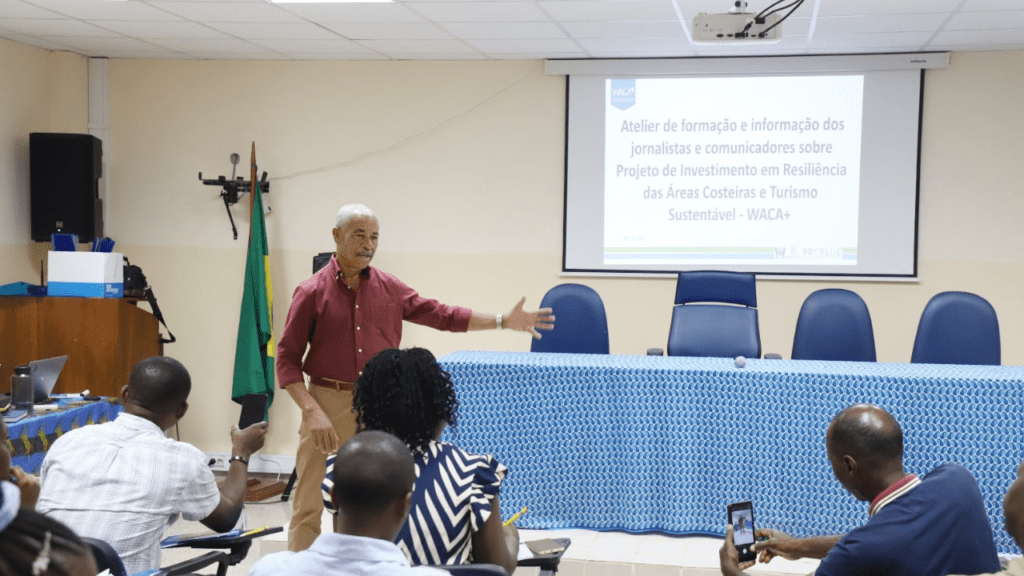 O Projeto de Investimento em Resiliência das Áreas Costeiras e Turismo Sustentável (WACA+) promoveu um atelier de formação e informação dirigido a jornalistas e comunicadores sociais, com o objetivo de reforçar o papel da comunicação social na sensibilização da população para as questões ligadas às mudanças climáticas.