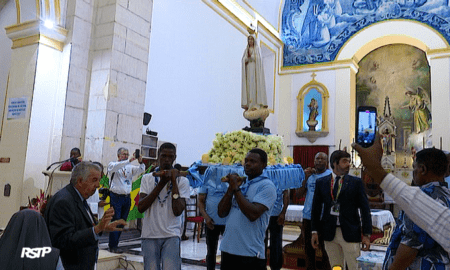 A receção da imagem, na noite de quarta-feira, foi seguida de uma procissão, com cânticos e orações, até a igreja da Sé...